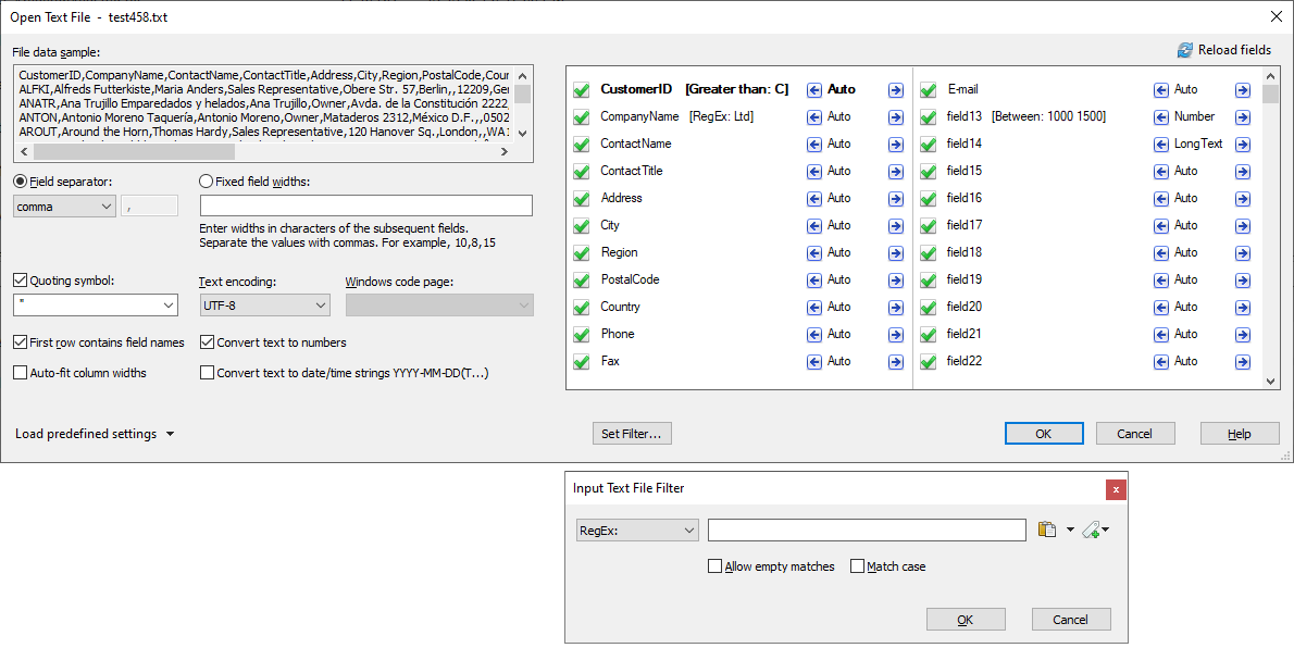 - You can individually set field types when importing CSV/text files with up to 16,384 columns: