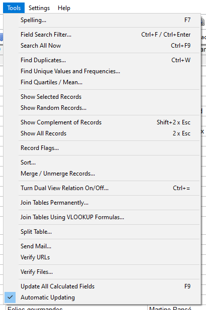 It’ll save your time when you’re adding/deleting fields, transforming fields etc. for large tables with calculated fields. Previously every such action always resulted in recalculating of all fields. In GS-Base 20.2, when you’re done, you can simply use the command Update All (F9).