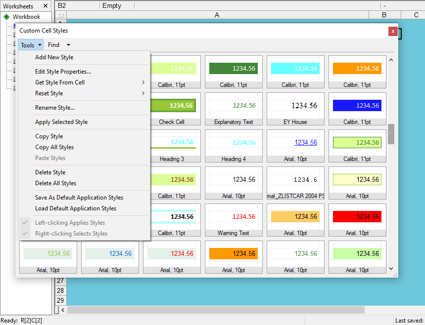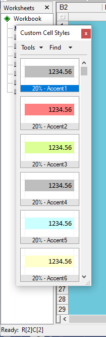 The “Custom Cell Styles” dialog box and options: