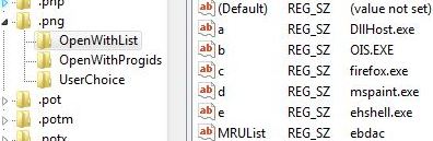 “Note: The programs on the Open With or Recommended Programs list for each file type are independent of that file’s registered or default associated program(s). Thus, deleting or removing a program from Open With list does not unassociate file type with its default program, nor affect the ability to automatically open the file in its default program when double click or click on Open command while right click. However, deletion of some registry keys does remove program’s default definition of file types and extensions it can handle at Default Programs…”